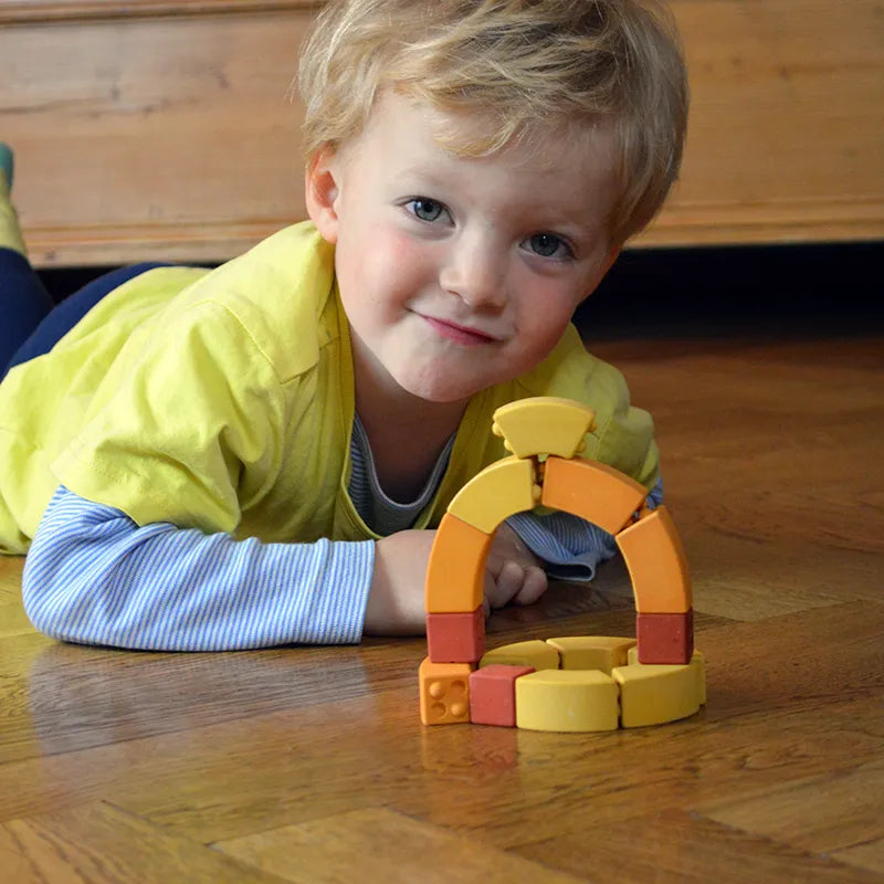 Die kajuSPIELBAUSTEINE sind einzigartige Bogen-Bausteine aus Upcycling-Hartgips. Sie werden sorgfältig von Hand in Deutschland aus kinderfreundlichen Materialien hergestellt.